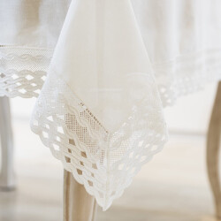 Gül Güler Dantelli Masa Örtüsü Su Dalgası 160x260 Beyaz